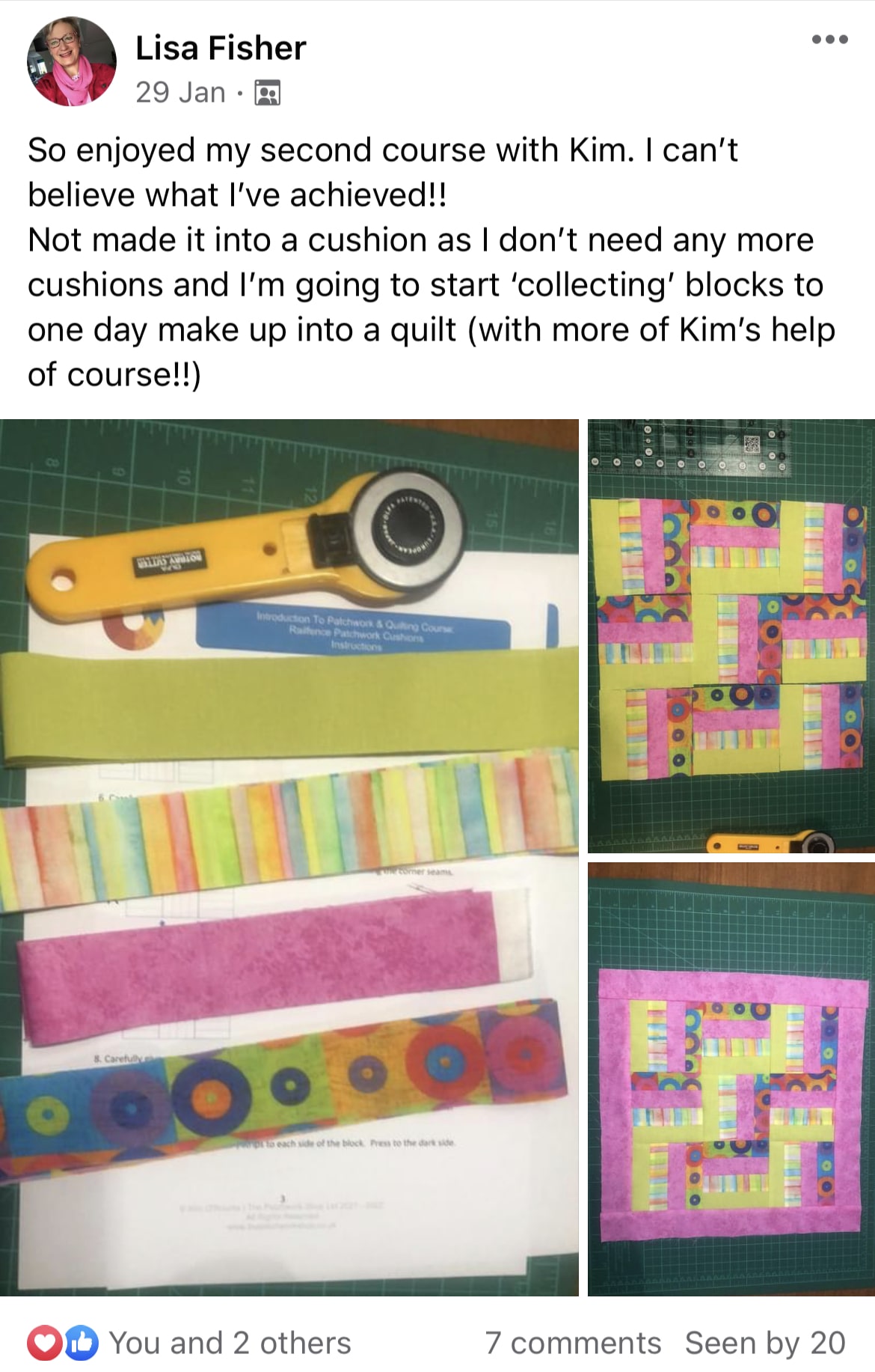 Join our private student group where I, alongside a community of fellow students, will be available to offer you personalised advice, answer questions, and share the excitement of each step along your quilting journey.
